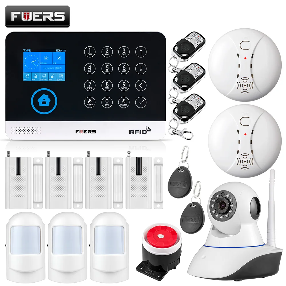 Si tu comprará a favor de Alarm Systems, entonces FUERS WG11 WIFI GSM inalámbrico hogar negocio antirrobo sistema de alarma de seguridad APP Control sirena RFID Detector de movimiento PIR Sensor de humo tal vez introducir taste